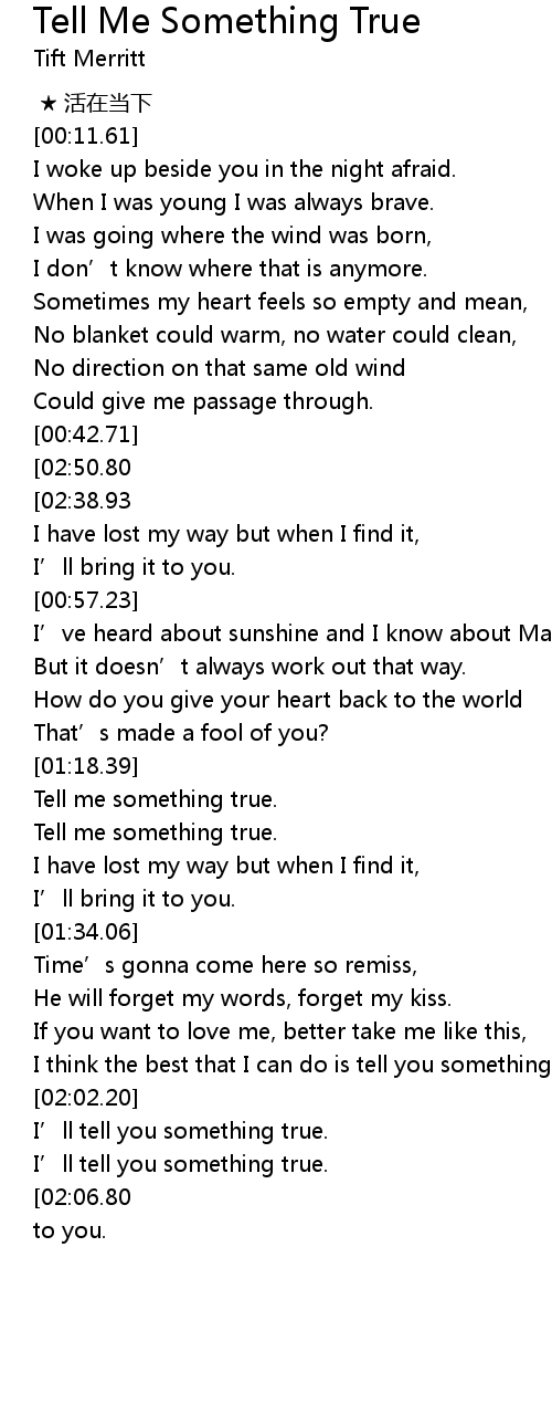 | [02:43.03][02:38.93][00:46.87] | Tell me something true. |