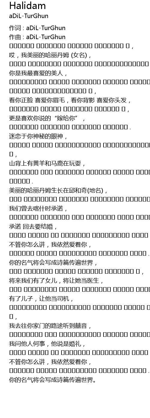 | 作词 : aDiL-TurGhun | |