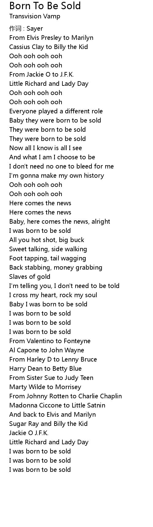 | Baby I was born to be sold | |
