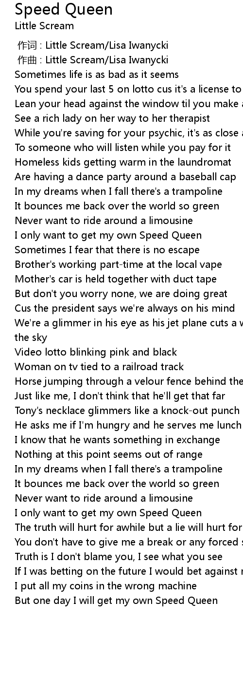 | [03:43.490] | I only want to get my own Speed Queen |
