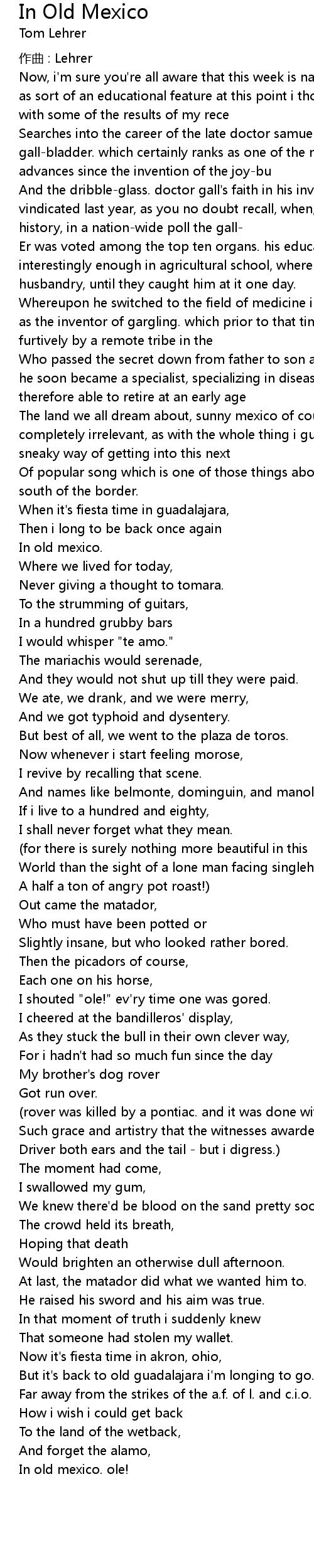 | Of popular song which is one of those things about that magic, and romantic land south of the border. | |