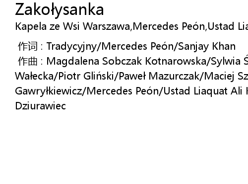 | [00:00.00-1] | 作曲 : Magdalena Sobczak Kotnarowska/Sylwia Świątkowska/Ewa Wałecka/Piotr Gliński/Paweł Mazurczak/Maciej Szajkowski/Miłosz Gawryłkiewicz/Mercedes Peón/Ustad Liaquat Ali Khan/Sanjay Khan/Mariusz Dziurawiec |
