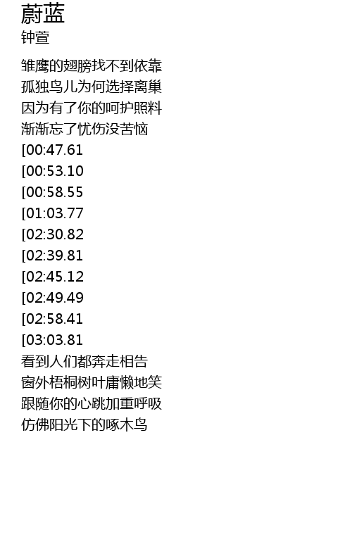 | [00:31.77] | 孤独鸟儿为何选择离巢 |
