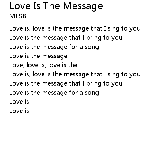 | Love is, love is the message that I sing to you | |