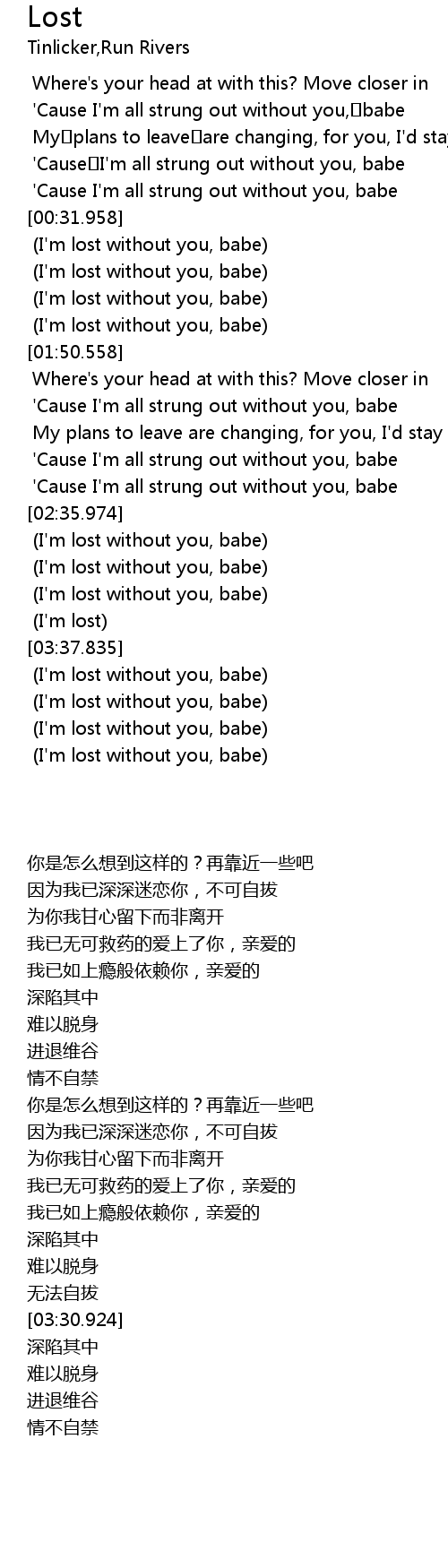 | [02:33.288] | ' Cause I' m all strung out without you, babe |