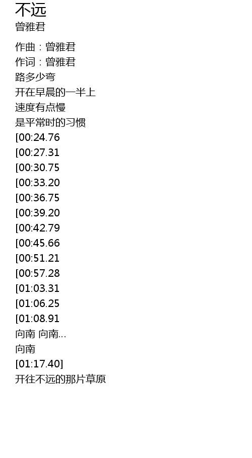 | [02:21.65] | kāi wǎng bù yuǎn de nà piàn cǎo yuán |