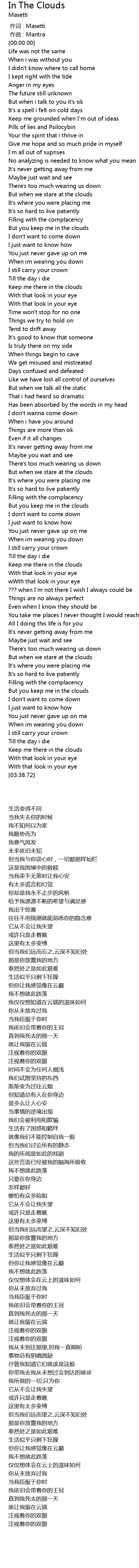 | [03:32.84] | 就让我留在云端 |