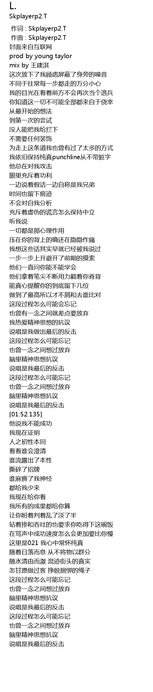 | [00:00.000] | 作词 : Skplayerp2.T |