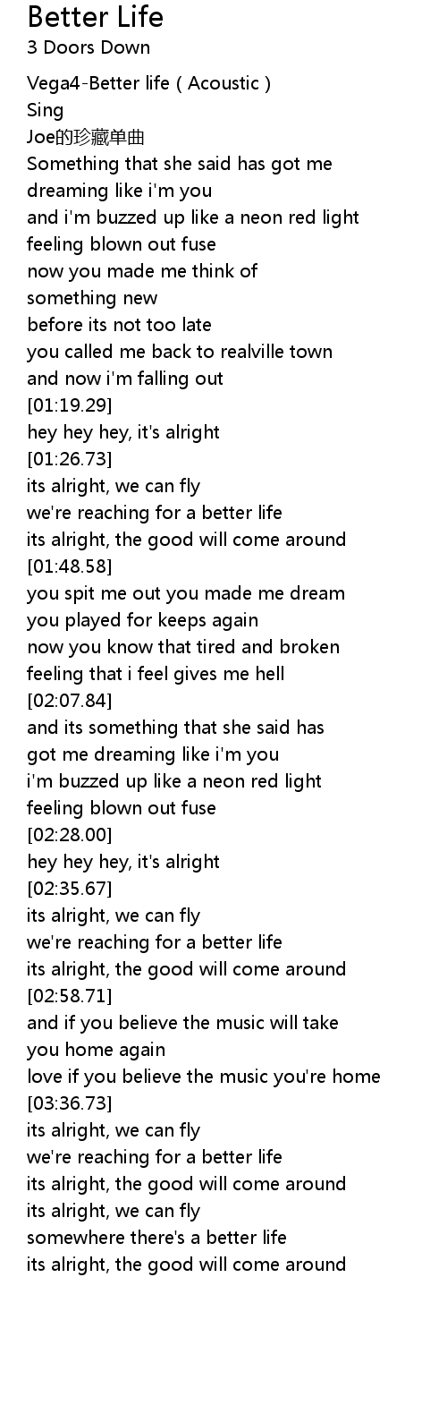 | [00:02.63] | Vega4-Better life(Acoustic) |