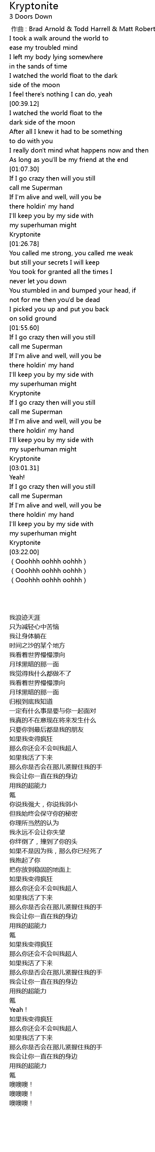 | [00:00.00] | zuo qu : Brad Arnold Todd Harrell Matt Roberts |