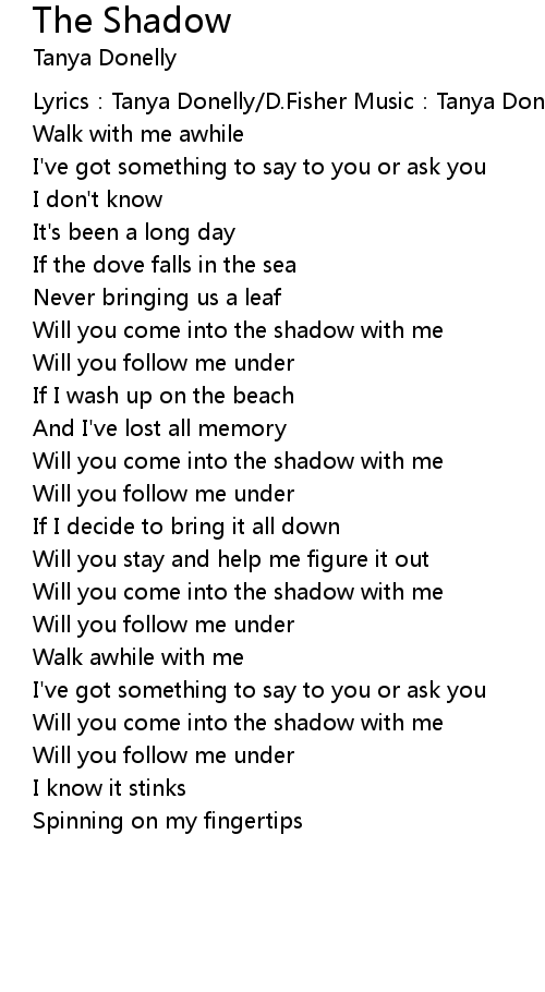 | Will you come into the shadow with me | |