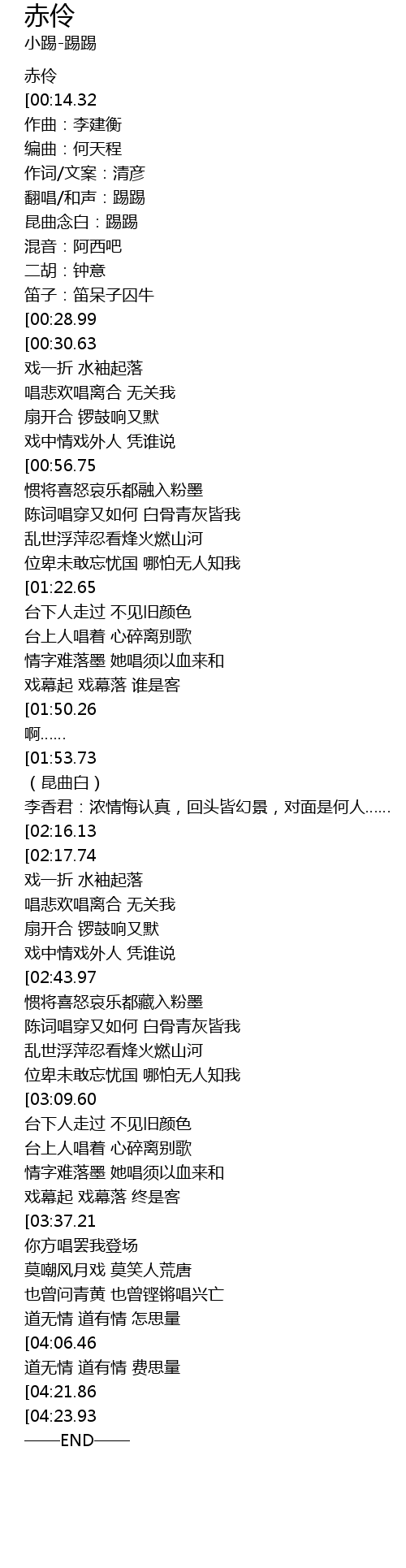 | [03:29.976] | 戏幕起 戏幕落 终是客 |