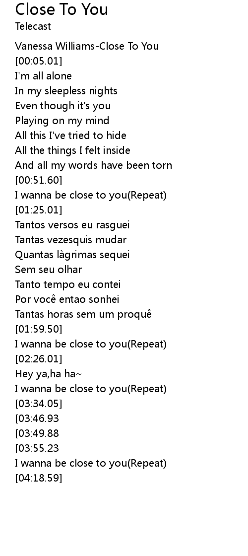 | [00:51.89] | I wanna be close to you(Repeat) |