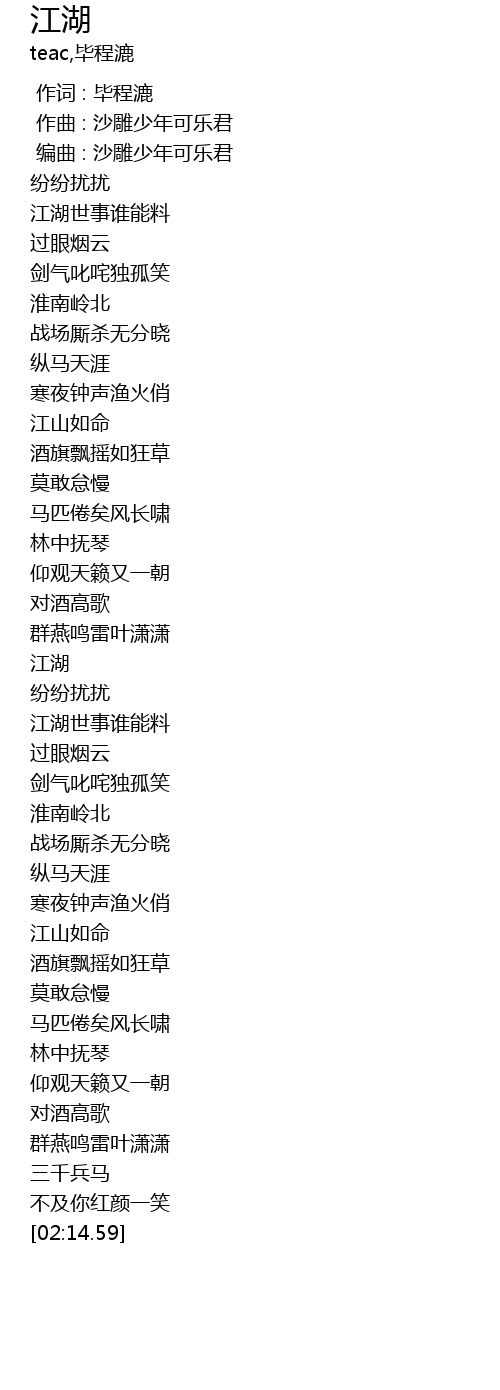 | [00:15.10] | 江湖世事谁能料 |