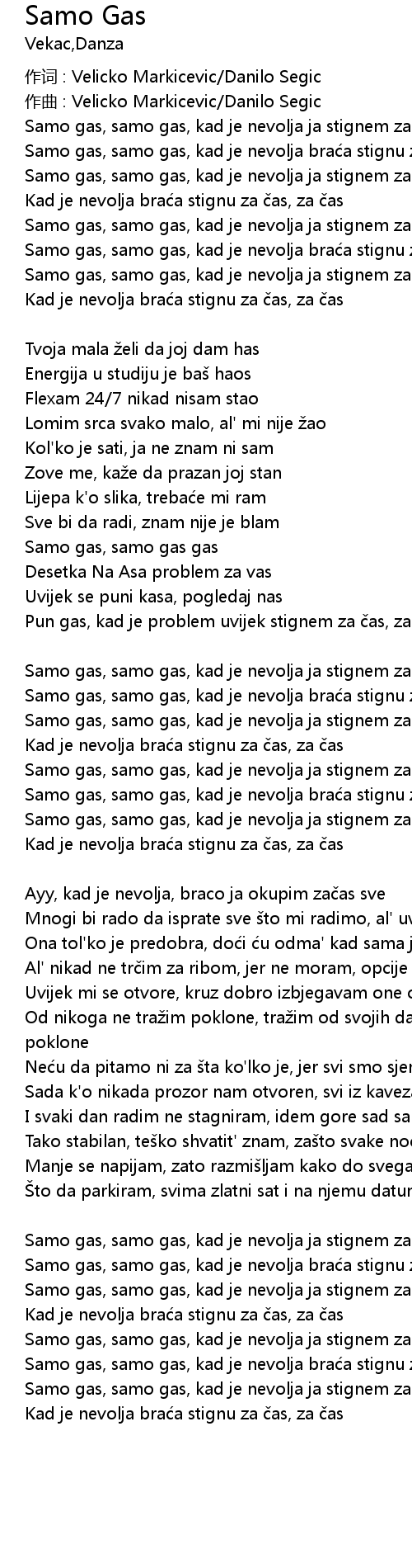 | Pun gas, kad je problem uvijek stignem za as, za as | |