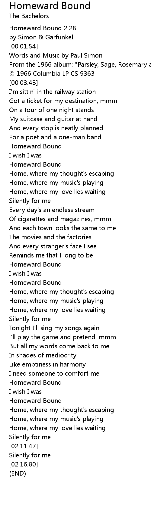 | [01:57.15] | Homeward Bound |