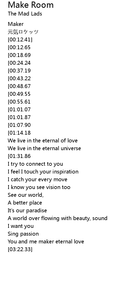 | [03:10.28] | You and me maker eternal love |