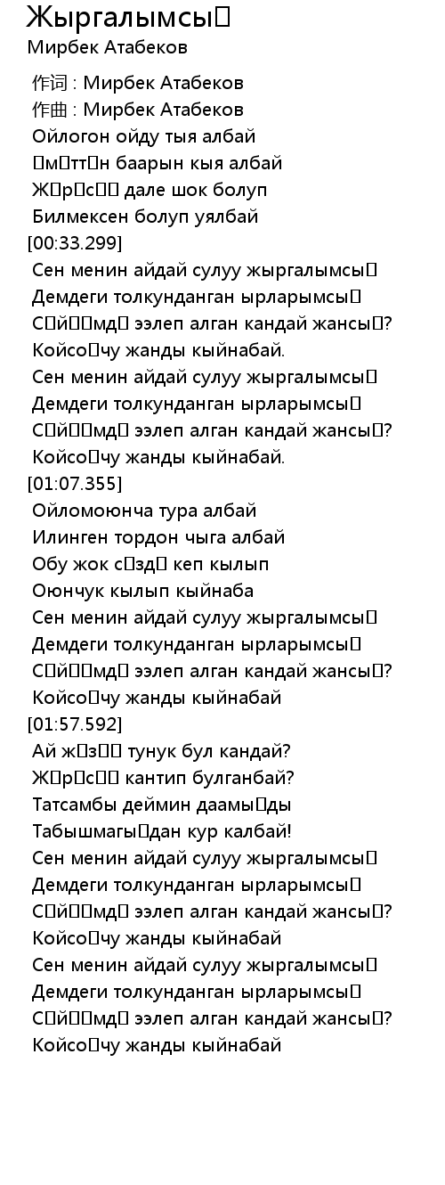 作词 : Мирбек Атабеков |