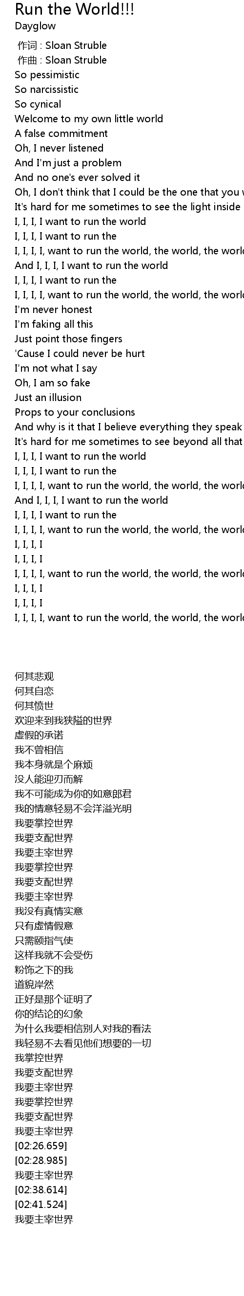 | [02:20.582] | I, I, I, I, want to run the world, the world, the world, the world |