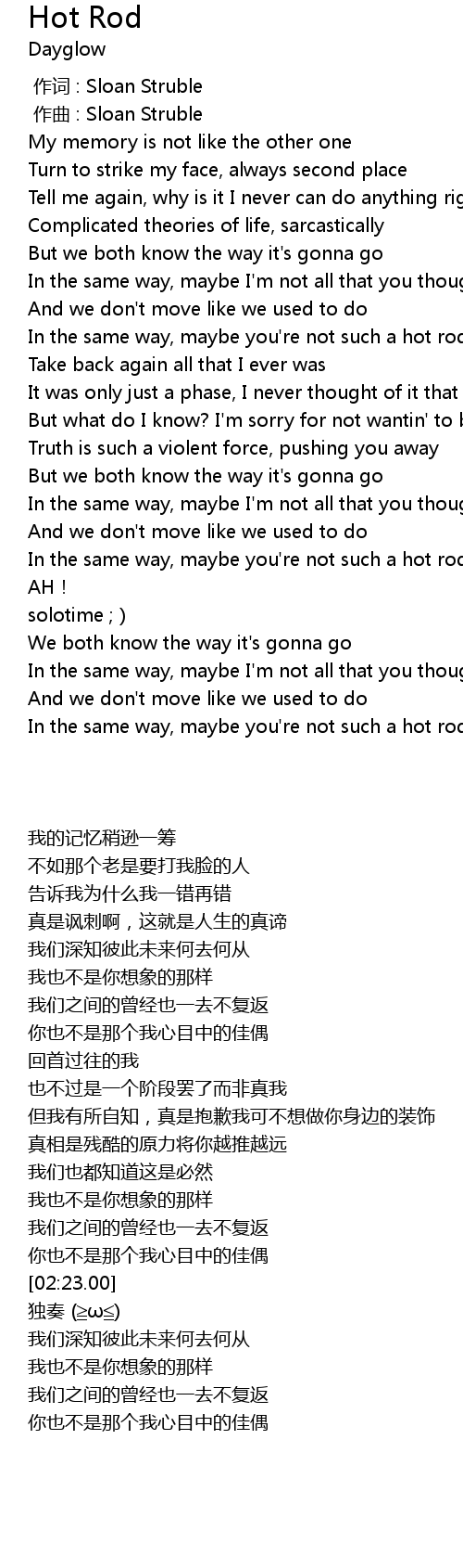 | [01:20.00] | In the same way, maybe you're not such a hot rod |