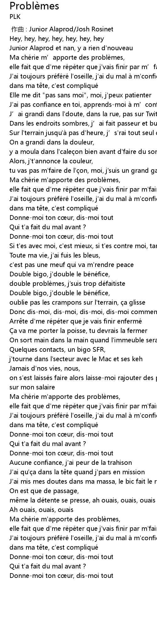 | [02:40.30] | Ma ché rie m' apporte des problè mes, |