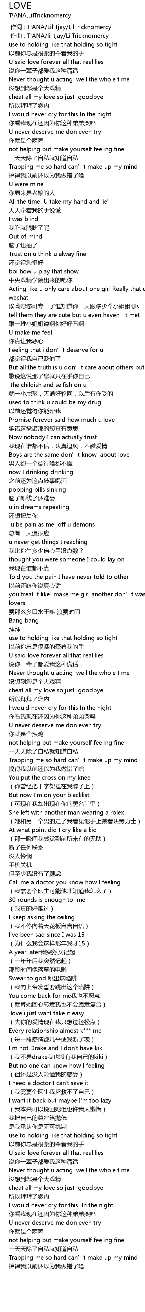 | [00:00.00] | 作词 : T!ANA/Lil Tjay/LilTricknomercy |