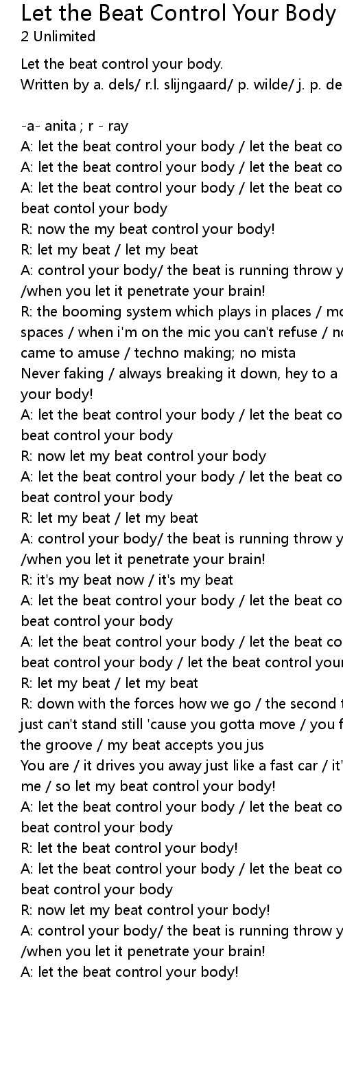 A: let the beat control your body / let the beat control your body / let the beat control your body |