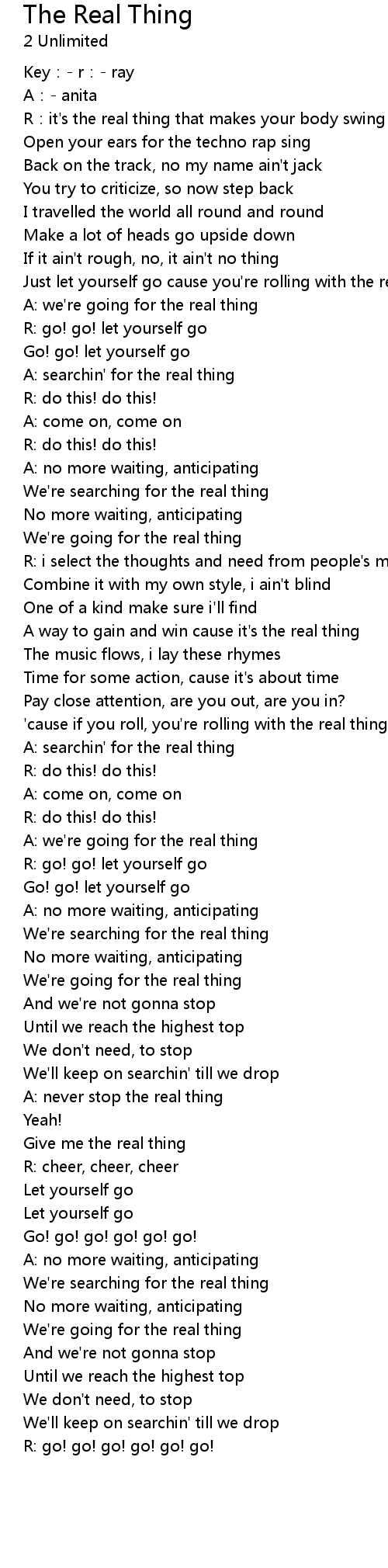 | 歌曲 | The Real Thing |
