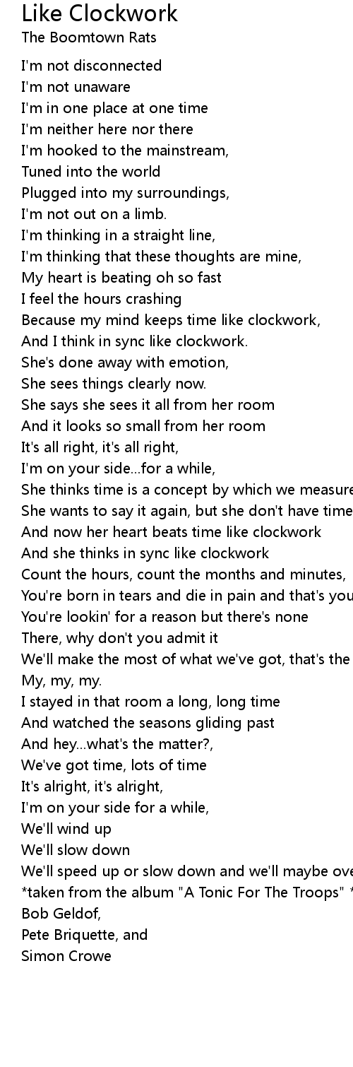 We'll speed up or slow down and we'll maybe overwind... but now or minds, etc. *taken from the album "A Tonic For The Troops" *written by