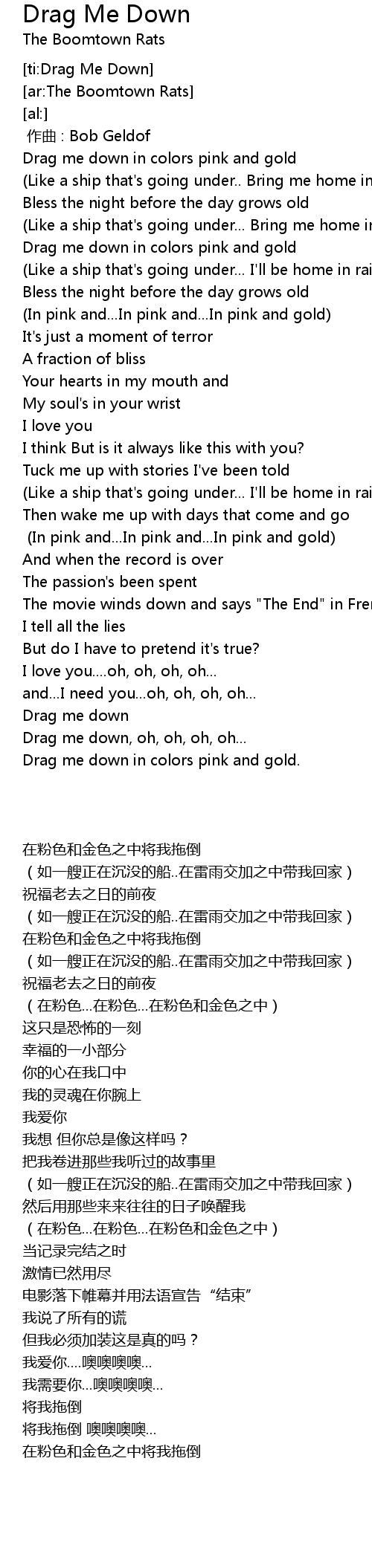 | [03:25.26] | Drag me down, oh, oh, oh, oh... |