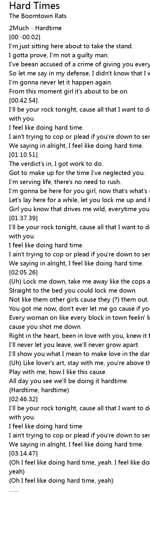 | [03:14.80] | (Oh I feel like doing hard time, yeah. I feel like doing hard time, yeah) |