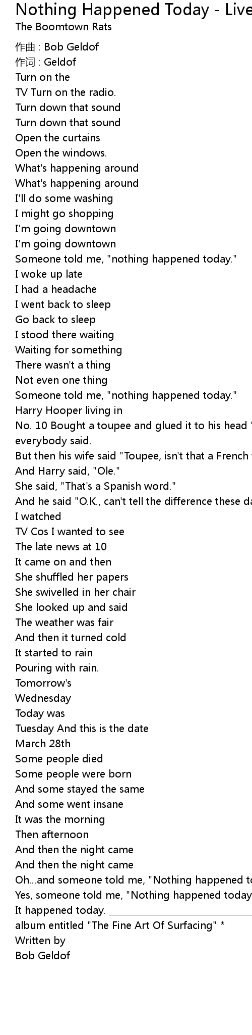 | 歌曲 | Nothing Happened Today - Live In Cardiff |
