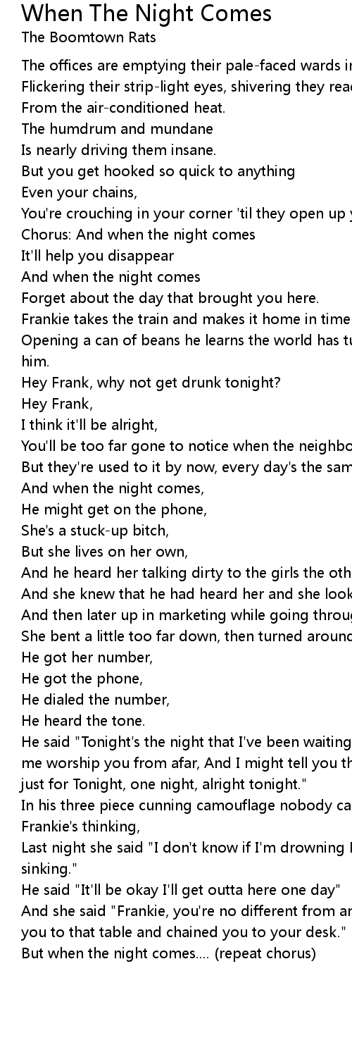 And she said "Frankie, you're no different from any of the rest, They've nailed you to that table and chained you to your desk." |