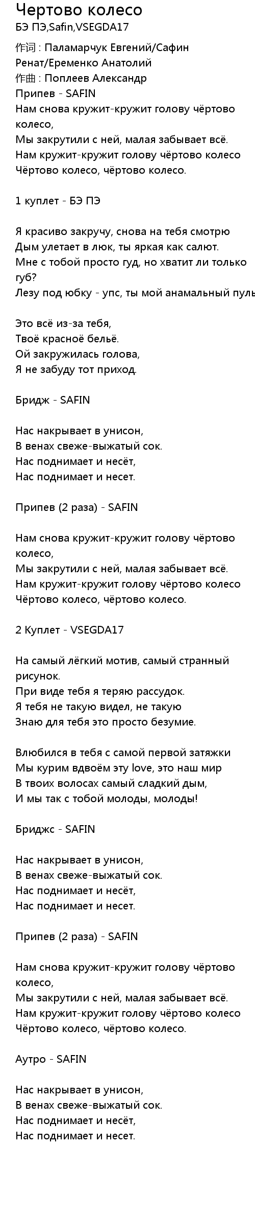 Припев (2 раза) - SAFIN |