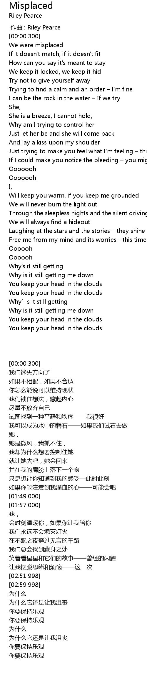 | 歌曲 | Misplaced |