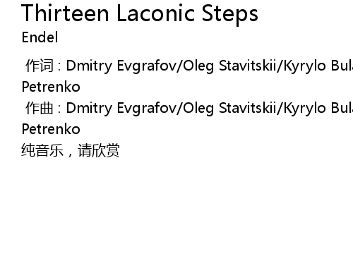 | [00:01.00] | zuò qǔ : Dmitry Evgrafov Oleg Stavitskii Kyrylo Bulatsev Philipp Petrenko |