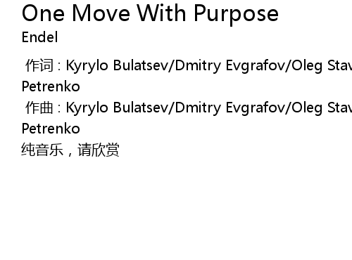 | 歌曲 | One Move With Purpose |