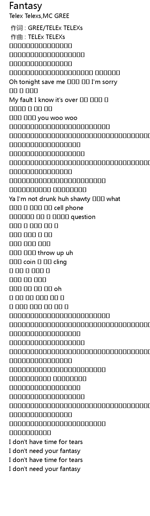 | [00:00.00] | 作词 : GREE/TELEx TELEXs |