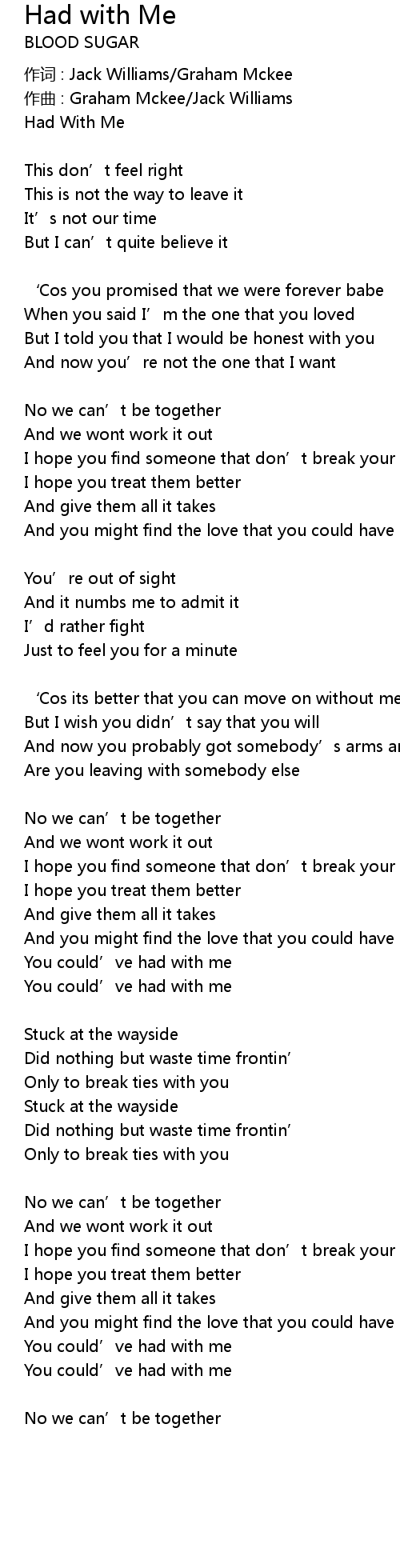 | 歌曲 | Had with Me |