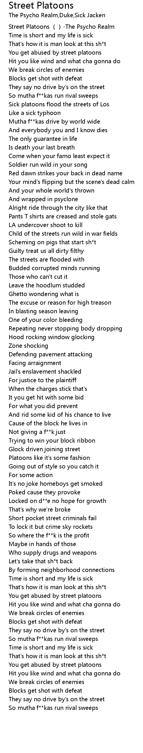 | [00:00.00] | Street Platoons The Psycho Realm |