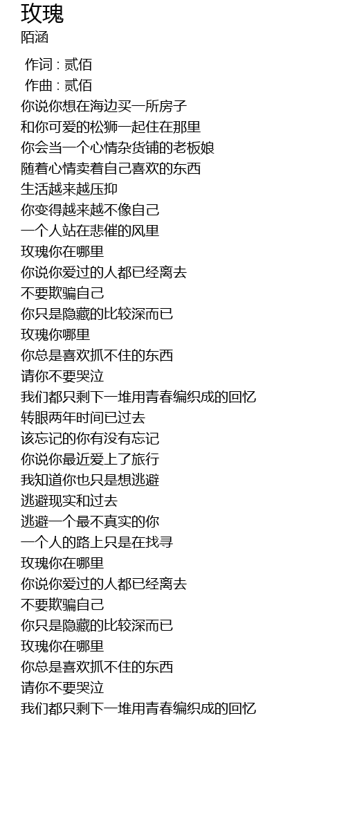 | [00:00.000] | 作词 : 贰佰 |