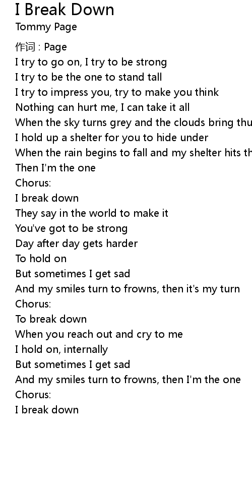 | 歌曲 | I Break Down |