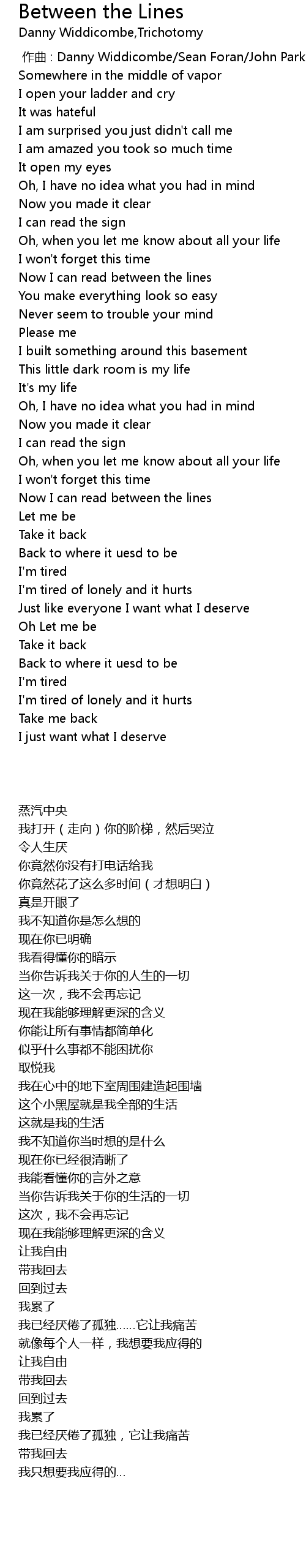 | [01:48.295] | Now I can read between the lines |