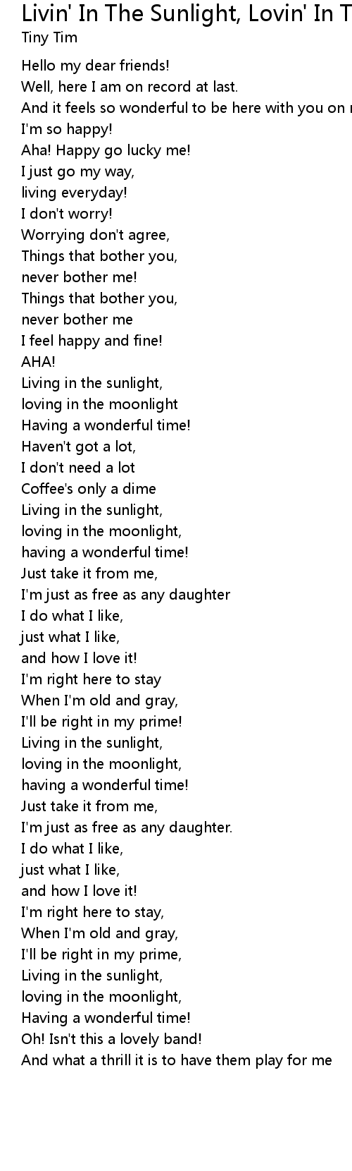 Living in the sunlight, |