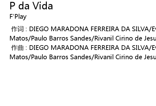 | [00:00.00-1] | 作词 : DIEGO MARADONA FERREIRA DA SILVA/Everton Domingos de Matos/Paulo Barros Sandes/Rivanil Cirino de Jesus |