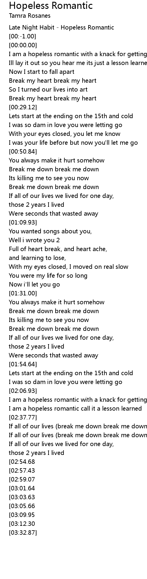 [02:33.19] I am a hopeless romantic call it a lesson learned