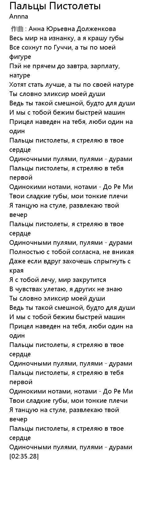 Пальцы Пистолеты 歌词