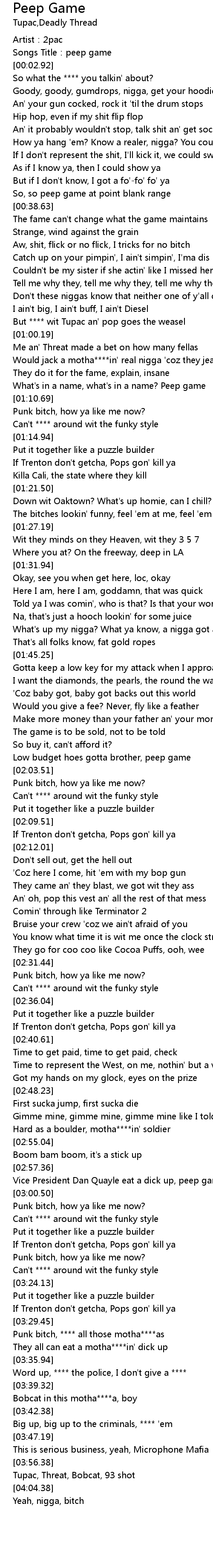 | [04:01.07] | Tupac, Threat, Bobcat, 93 shot |