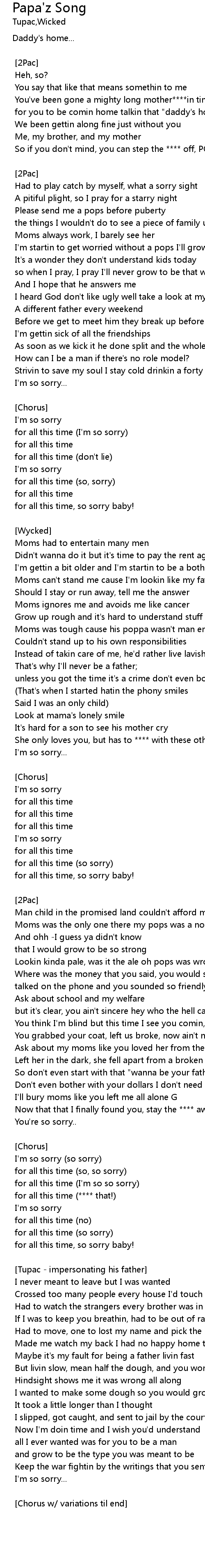 | for you to be comin home talkin that "daddy's home" shit (nigga) | |