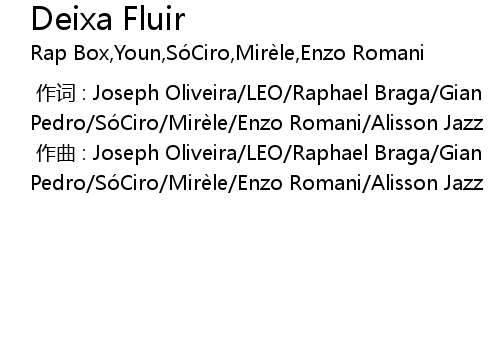 | [00:00.00-1] | 作词 : Joseph Oliveira/LEO/Raphael Braga/Gian Pedro/SóCiro/Mirèle/Enzo Romani/Alisson Jazz |